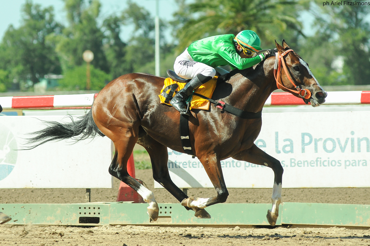 El representante de las sedas del Stud Juanel ganó Condicional (1600m-Arena) para todo caballo de 4 años y más ganadores de una carrera en el Hipódromo de La Plata. Montado por Brian R. Enrique y preparado por Javier E. Cabrera, aventajó por ½ cuerpo a Anochecido Song (Alcindor), en tercer lugar llegó Kosmico Soy (Aerosol) a 2½ cuerpos y en cuarto lugar Tua Hee (Cima De Triomphe) a 6½ cuerpos. El zaino doradillo oriundo del La Fortaleza, registró 1.37.02 para la distancia, pagando 2.25 a ganador.